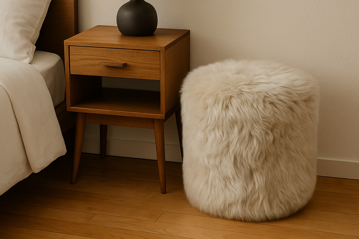 天然ムートンのやわらかな質感と豊かなボリューム感が魅力のスツール。